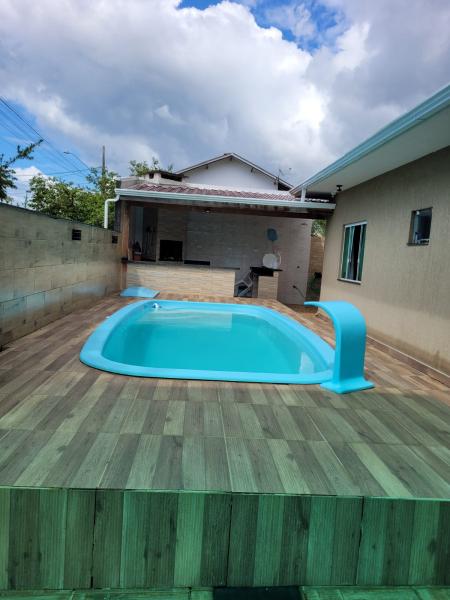 Estou apresentando para vcs esse excelente imóvel de esquina com uma casa de alvenaria de 200 m2, tudo isso construído em um terreno de 14 x 24 metros, excelente acabamento, porcelanato, laje com teto em gesso, duas áreas gourmet, piscina, garagem para 4 carros, lavanderia, sala, copa, cozinha integrada deixando o ambiente mais amplo e aconchegante, 3 quartos, sendo 1 suíte, banheiro social, imóvel localizado na Rua Maringá, bairro Brejatuba, a 600 metros do Supermercado Brasão, Clube Café Curaçao, Praia do Brejatuba, tudo que vc precisar no seu entorno temos, e a 10 minutos do centro de Guaratuba-PR.